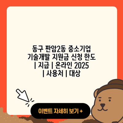 동구 판암2동 중소기업 기술개발 지원금 신청 한도 | 지급 | 온라인 2025 | 사용처 | 대상