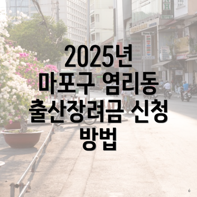 위 정보를 바탕으로 2025년 마포구 염리동에서 출산장려금을 신청하고, 건강한 가정을 이루는 데 큰 도움이 되길 바랍니다.